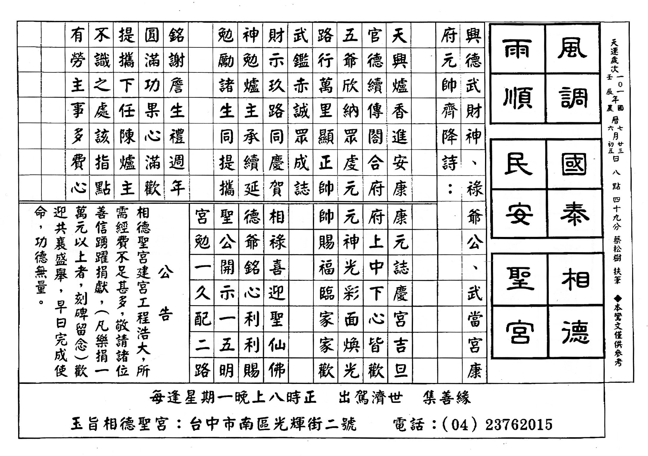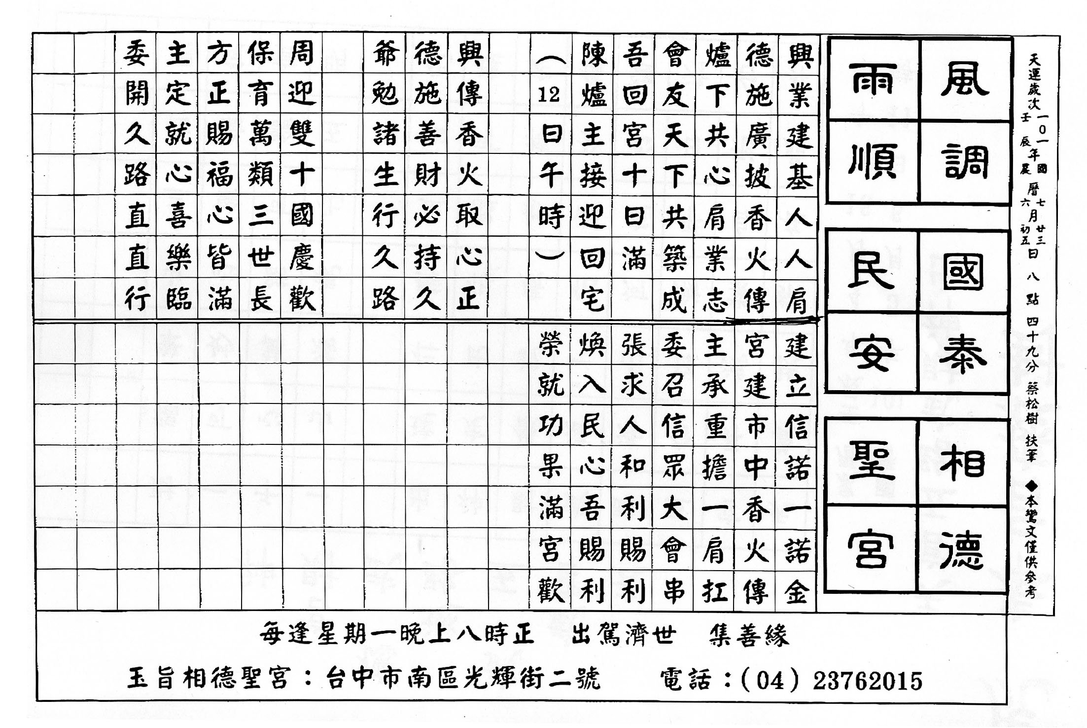 台中玉旨相德聖宮(農曆壬辰年 六月初五 日戌時出)